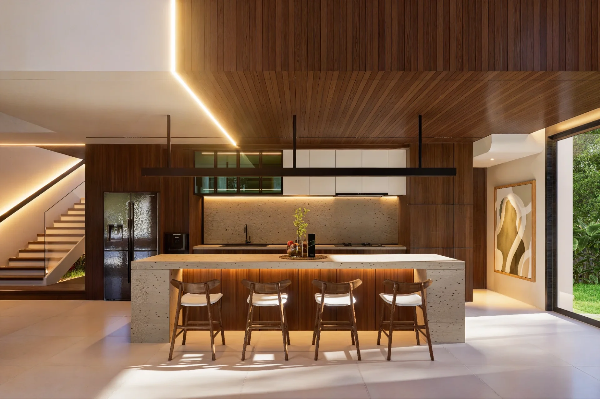 In this type of luxury villa interior design, you will notice that attention to detail is key. Every element, from textures to lighting, works together to create a cohesive and elevated environment designed by our expert team in Manon.
