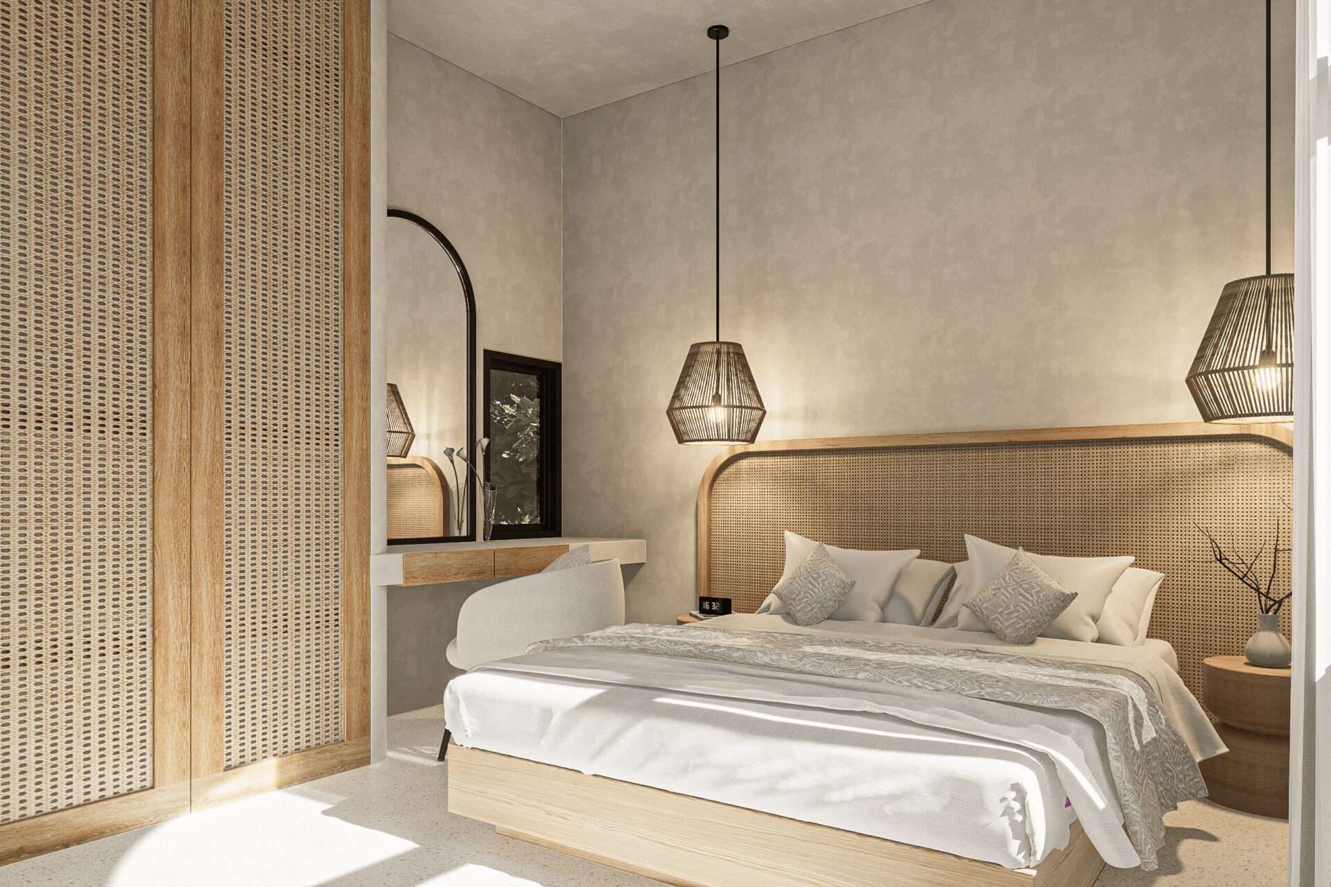 Guided by the Mediterranean architecture style, the interiors are softened with warm wood accents that bring comfort and tactility to the minimalist aesthetic. Each residence here is designed to feel open yet intimate, encouraging connection to natural elements and daily rituals.