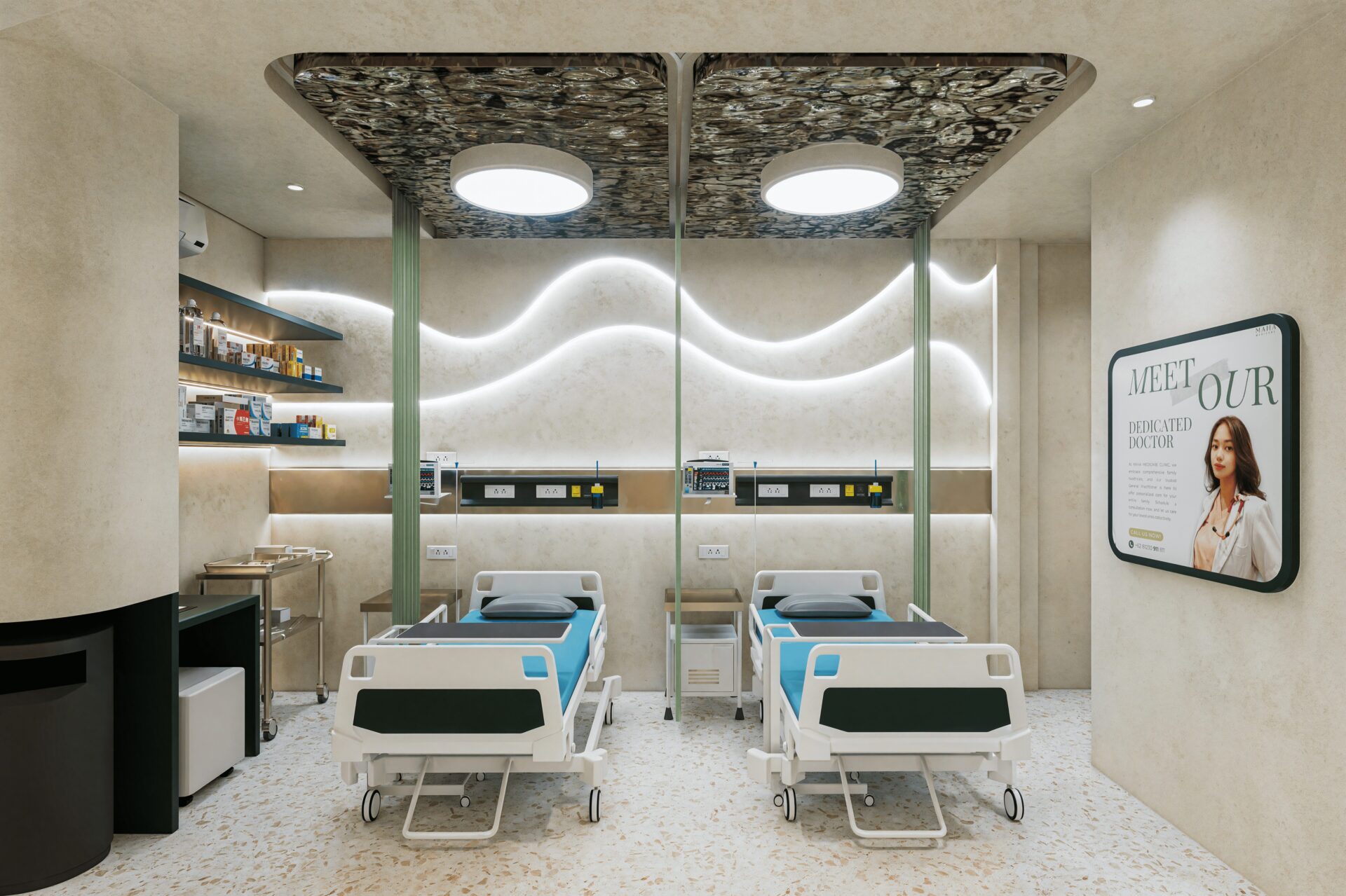 Existing parking and an intuitive circulation plan also ensure accessibility for patients and staff. The reception sets a welcoming tone, while the consultation and recovery spaces feel open yet cocooned, filled with natural light that redefines what a modern healthcare space can be.