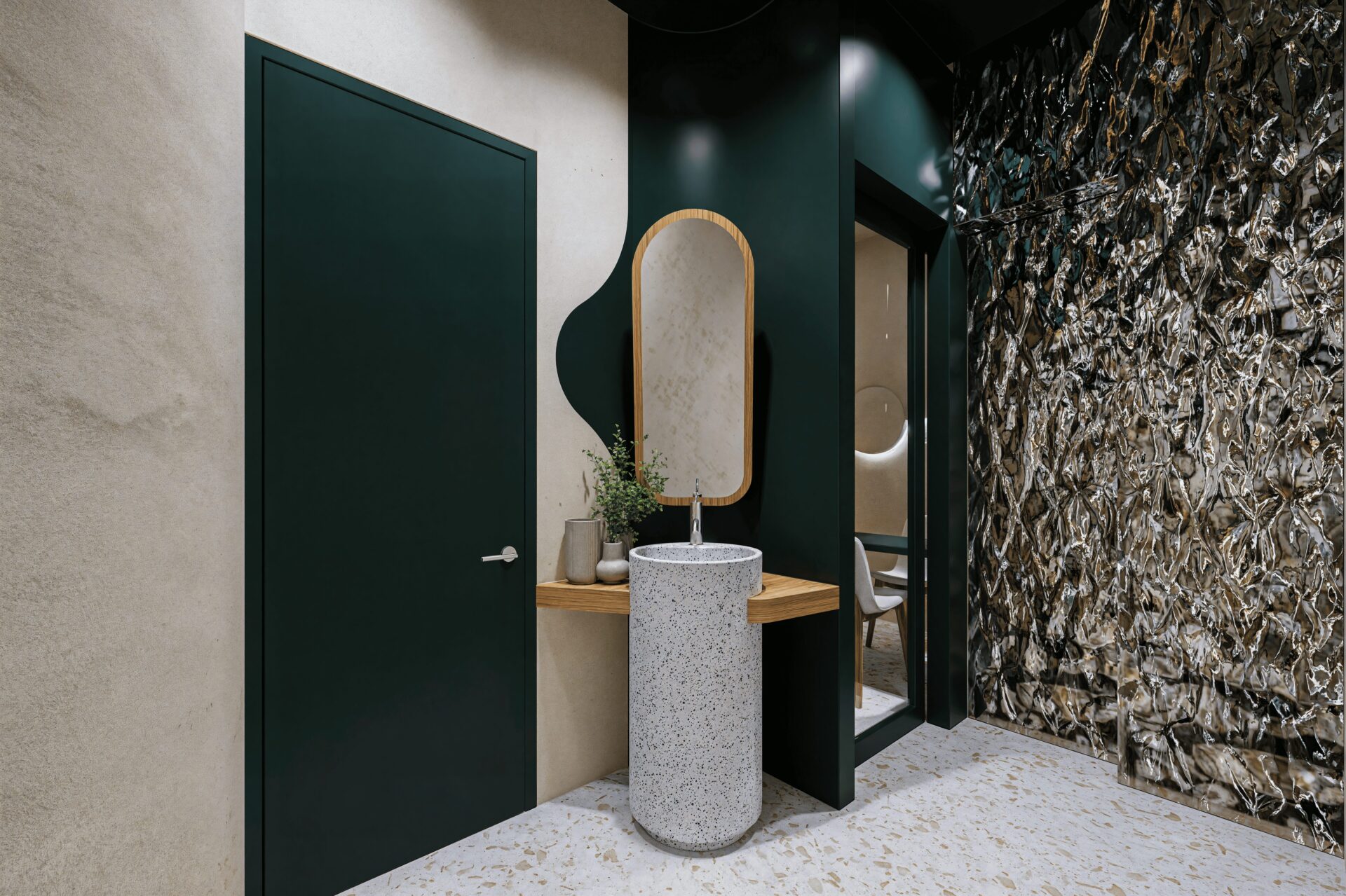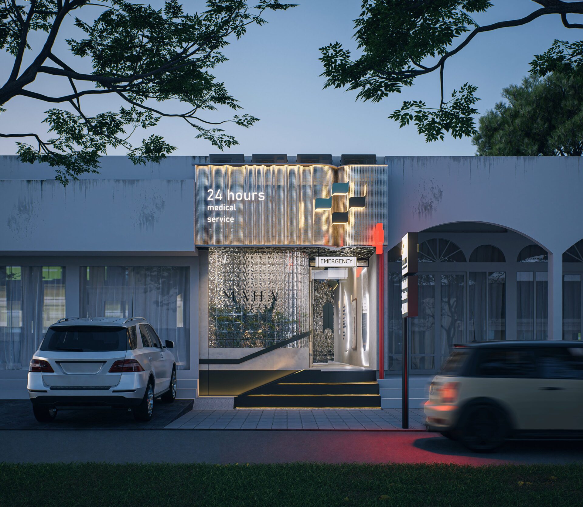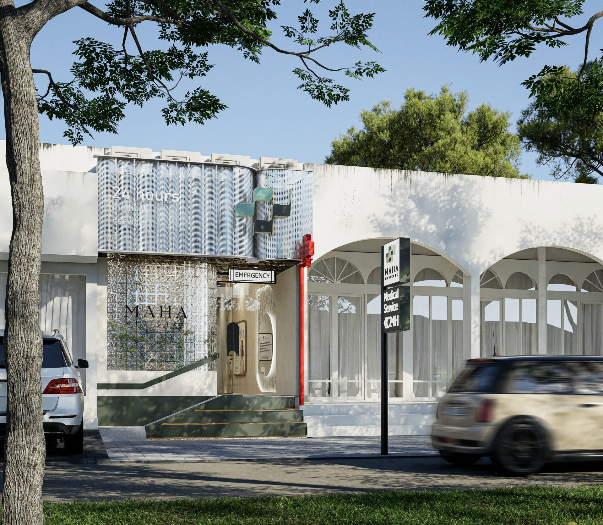 Within its intimate 80 m² layout, the clinic balances efficiency with warmth. In this biomorphic architecture, every space - from the Front Office & Pharmacy to the Doctor Consultation Room and Recovery Area is designed for privacy, clarity, and comfort.
